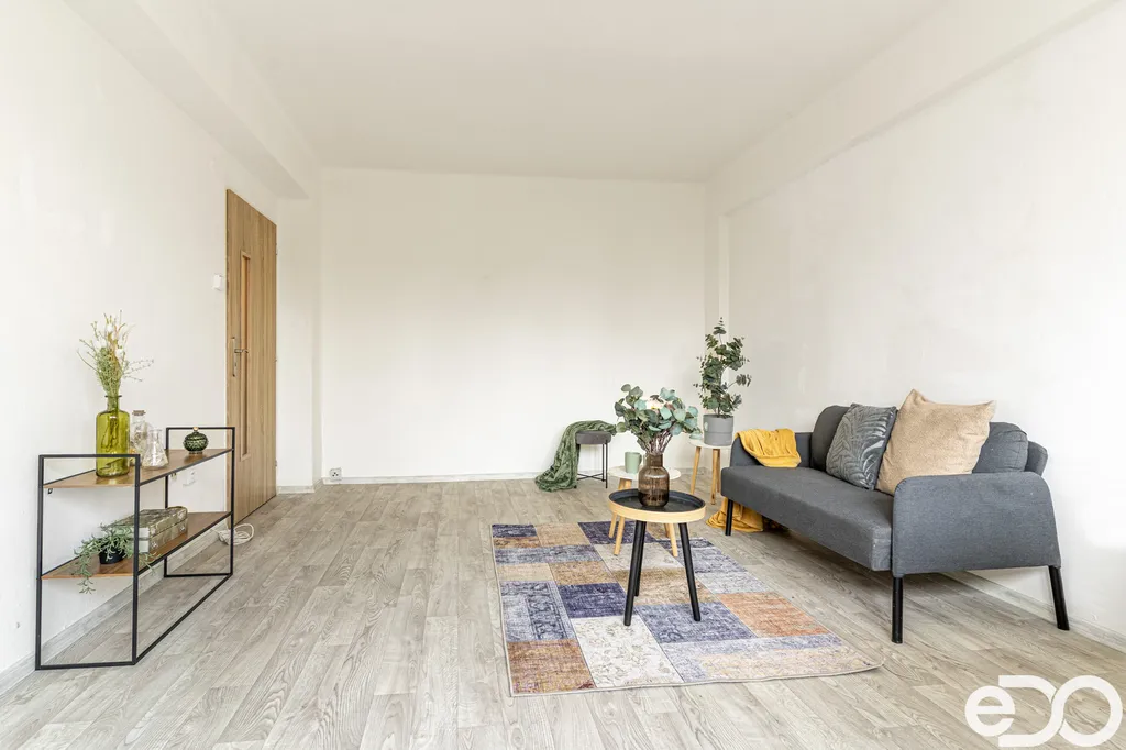 Byt má praktické a funkční uspořádání. Obývací pokoj je průchozí do kuchyně, čímž vzniká přirozený denní prostor. Kuchyně je vybavena kuchyňskou linkou a sporákem.