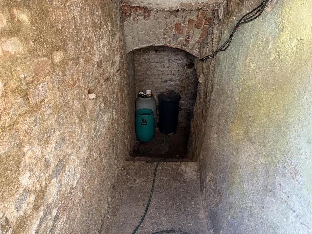 Vstupem hlavními vraty se dostaneme do prostorného průjezdu, jehož celková plocha činí přibližně 21,76 m². Po levé straně se nachází samotný vstup do bytu.