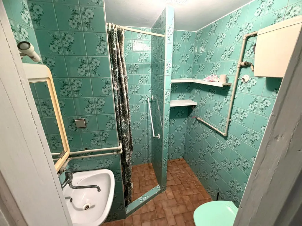 Vstupními dveřmi vejdeme do vstupní místnosti, která slouží zároveň jako kuchyně a její celková výměra činí přibližně 7,44 m². Tato místnost tvoří přirozený střed bytu, který umožňuje pohodlný přístup do jeho ostatních částí. Z kuchyně vede vstup do prvního pokoje o výměře cca 14,57 m² a lze jej využít jako obývací pokoj či ložnici. Z kuchyně pokračujeme do menší chodby o výměře cca 2,04 m², která zajišťuje přístup do koupelny. Koupelna o celkové ploše cca 2,82 m² je prakticky řešena a je vybavena sprchovým koutem, umyvadlem a toaletou. Poslední místností bytu je prostorný pokoj orientovaný do klidného dvora. Tato místnost o celkové výměře cca 17,16 m² díky orientaci do dvora nabízí klidné a příjemné prostředí vhodné k odpočinku.