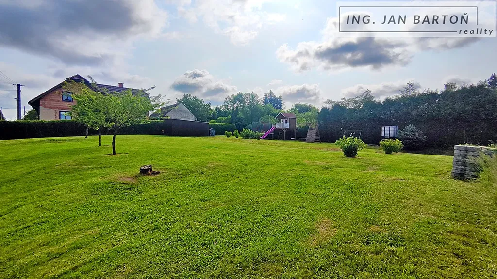 Na pozemku ovocné stromy, keře, travnatá plocha, částečně oploceno.