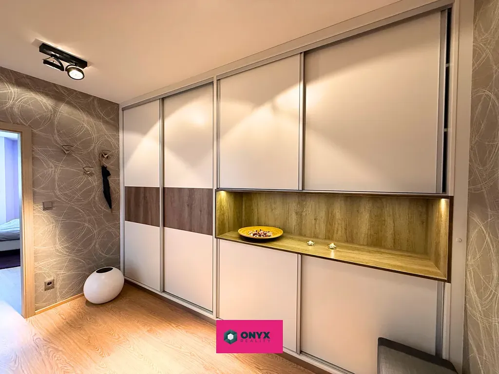 Byt je plnohodnotně vybavený vč. na míru vyrobené kuchyňské linky s vestavěnými spotřebiči, dále s velkou vestavěnou skříní v chodbě a dalším nábytkem.