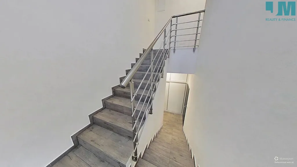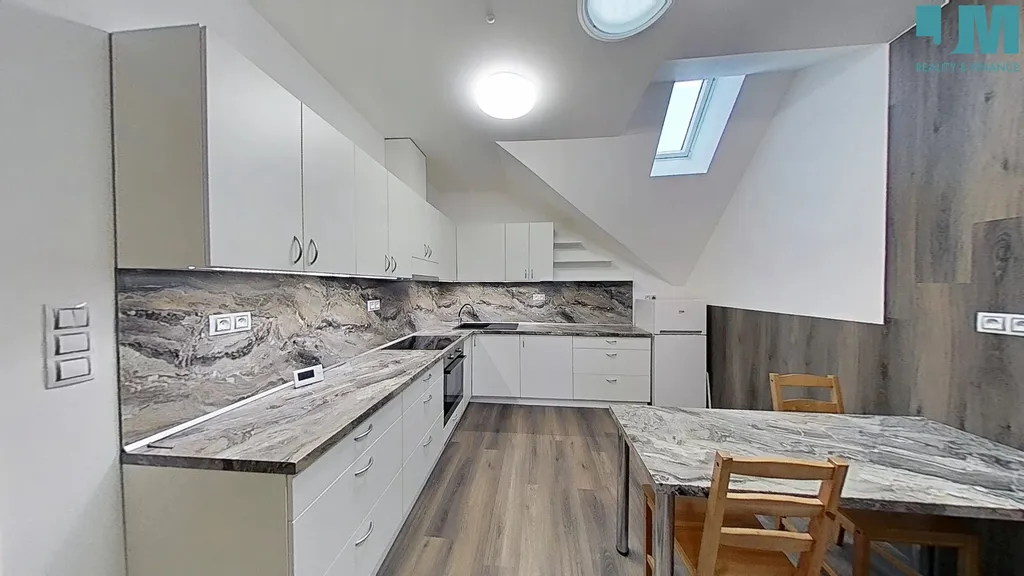 Po vstupu do bytu se ocitnete v menší předsíni s vestavěnou skříní, na kterou navazuje samostatná technická místnost. Po schodišti se dostanete do hlavní obytné části bytu s kuchyní vybavenou troubou, varnou deskou, lednicí a jídelním stolem. Pro myčku je zde připraveno místo. Celý byt je vybaven podlahovým topením.