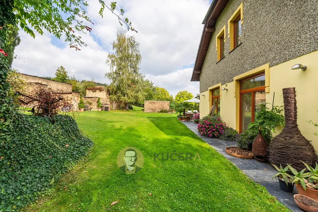 Ve vzrostlé zahradě o rozloze 7 360 m² stojí prostorný rodinný dům ve tvaru písmene L, který prošel kompletní rekonstrukcí. Součástí této nabídky jsou také pozemky o rozloze 144 925 m², které lze využit pro rekreaci, chov zvířat, vlastní les nebo čistě jako investici.