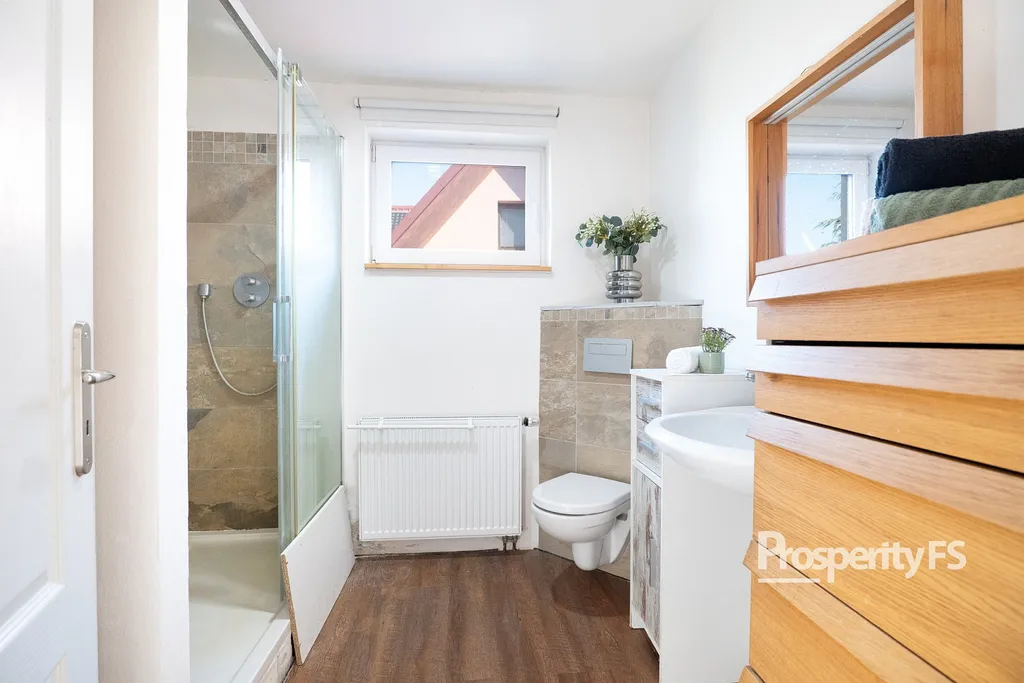 - 1. NP koupelna + WC, hlavní ložnice a obývací pokoj