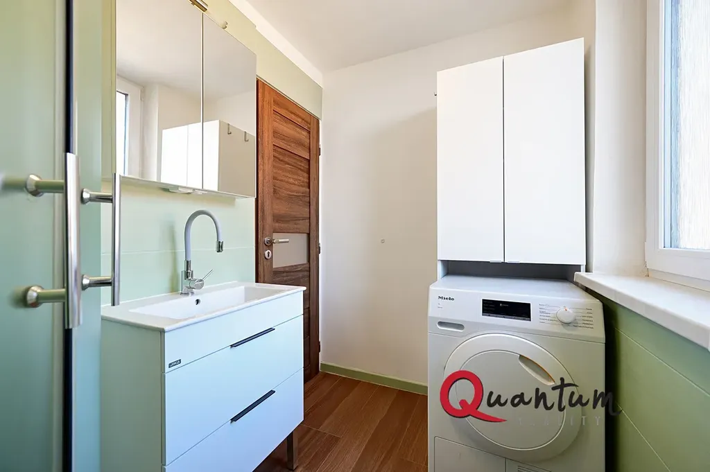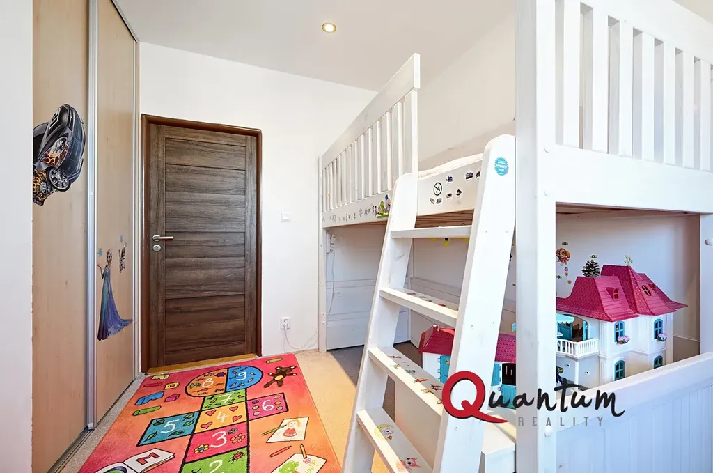 Obývací pokoj s parketovou podlahou je orientován na jih a východ, je krásně prosvětlený po celý den a nabízí vstup na zasklenou lodžii, která může sloužit jako příjemné místo k posezení nebo relaxaci. Kuchyně je od obývacího pokoje oddělena nízkou zídkou a je prakticky řešena tak, aby poskytovala dostatek pracovního prostoru. Z chodby se vstupuje do prostorné ložnice orientované na východ a do dětského pokoje s oknem na sever, oba pokoje mají parketové podlahy a klidnou atmosféru vhodnou k odpočinku i dětským aktivitám. Koupelna je vybavena sprchovým koutem, oknem a místem pro sušičku, toaleta je samostatná a vedle ní se nachází technická místnost s plynovým kotlem a připojením pro pračku.