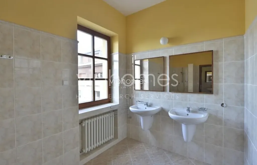 V hlavní úrovni se nachází vstupní hala, prostorný obývací pokoj, plně vybavená kuchyň, jídelna, koupelna a samostatná toaleta. Kuchyně je plně zařízena všemi potřebnými spotřebiči (sporák, lednice, myčka nádobí, mikrovlnná trouba). V prvním patře jsou situovány 3 ložnice, koupelna se sprchovým koutem a vanou, samostatná toaleta, 2 jižně situovány balkony. Otevřený prostor ve druhém patře - podkroví nabízí flexibilní dispozici / pokoj/herna/TV místnost, další 2 ložnice, koupelnu a toaletu. V suterénu domu je umístěna prostorná prádelna, dvě místnosti, a úložné prostory. Dvougaráž a další parkovací místo na pozemku. Zálohové platby energie a služby: 15 000 Kč / měsíc.