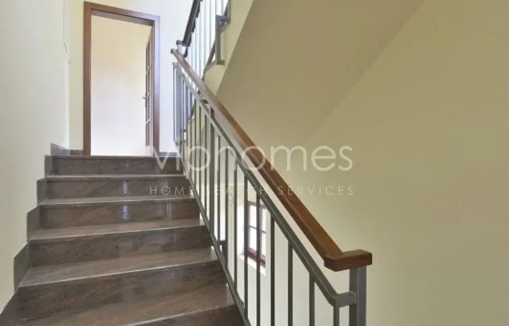 Vila odpovídá nejvyšším nárokům: mramorové schodiště, dřevěné podlahy, rozvody pro satelit, zabezpečovací zařízení ve všech patrech, udržovaná zahrada.