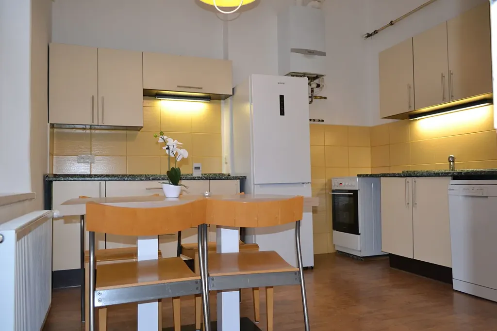 Vytápění je řešeno plynem, teplá voda karmou. Byt nabízí příjemnou kombinaci moderního bydlení a atmosféry díky možnosti topení v kamnech.