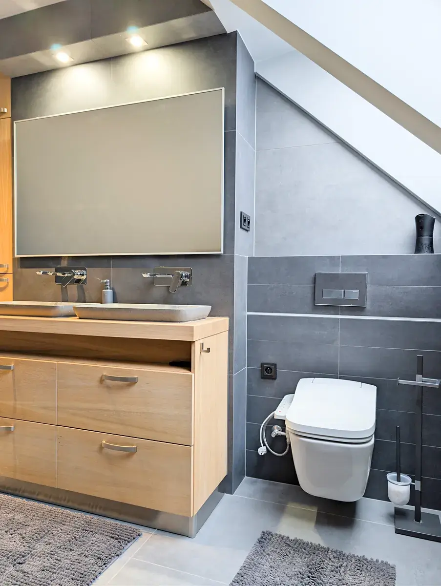 - Spodní koupelna byla již nově zrekonstruovaná v roce 2018