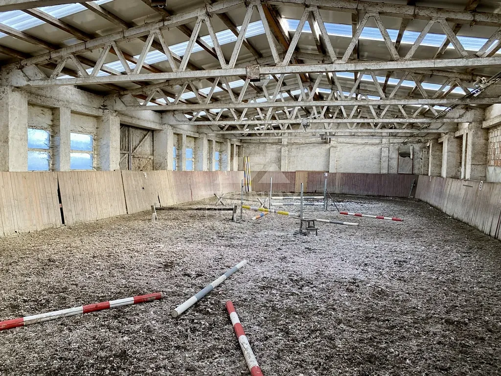 Dále jsou zde, vnitřní stáje s 23-ti kompletně vybavenými prostornými vestavnými boxy o ploše 490 m², sedlovna se šatnou a sociálním zázemím, klubovna, garáž na traktor, vnitřní krytá jízdárna o rozměrech 13x30m s kvalitním povrchem písek + geotextílie o ploše 390 m², venkovní jízdárna přípravou na osvětlení o rozměrech 37x52m s možností zvětšení s kvalitním povrchem písek + geotextílie a kvalitním drenážním systémem. Je zde i sklad překážek s kompletním skokovým vybavením na parkur o celkové ploše 1.860 m², seník s kapacitou 220 balíků sena o průměru 150 cm a sklady krmiva, pilin a dřeva. Na pozemku je umístěn podzemní rezervoár na dešťovou vodu k zajištění kropení venkovní jízdárny v letním období o kapacitě 60.000 litrů.