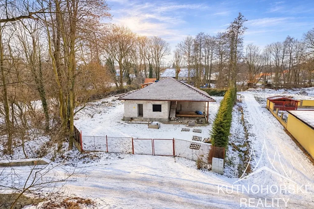 Rozestavěná stavba o dispozici 5+kk + samostatné 1+kk stojí na pozemku o rozloze 1450 m². Součástí prodeje je také podíl na příjezdové cestě.