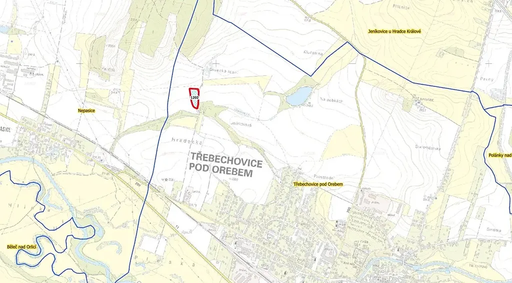 Nabízíme Vám k odkoupení krásný pozemek o velikosti podílu ve výši ideální poloviny a výměře 3666m v katastrálním území Třebechovice pod Orebem. Parcela se nachází v okrajové části katastru a je skvěle přístupný z místní cesty. Pole je nyní obhospodařováno místním zemědělským podnikem.