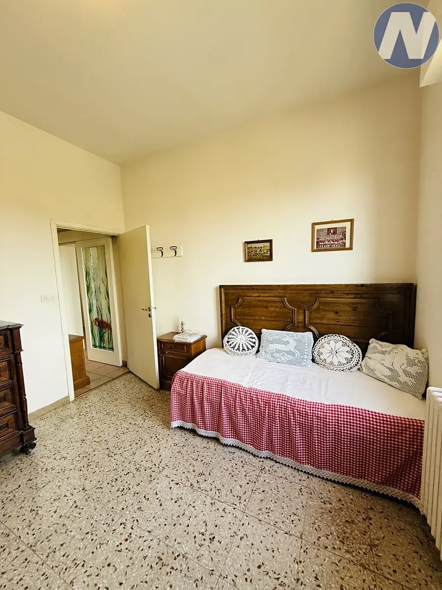 Hlavní vchod vede do prvního patra, kde je kuchyň s navazujícím obývacím pokojem, jehož dominantou je kamenný krb. Z obývacího pokoje je vstup na velký balkon, kde si vychutnáte ranní šálek kávy nebo večerní sklenku výborného toskánského vína. Na tomto podlaží jsou i dvě velké ložnice a stylová koupelna s WC.
