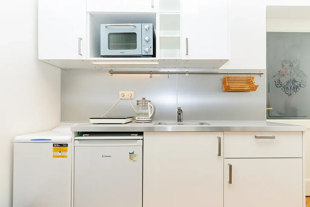 Byt je ve velmi dobrém technickém stavu. Dispozice je navržena s důrazem na funkčnost a maximální využití prostoru. Světlý obytný prostor s kuchyňským koutem je vybaven menší kuchynskou linkou se spotřebiči – lednicí, varnou deskou, digestoří a pračkou. Elegantní koupelna se sprchovým koutem, umyvadlem a toaletou. Kvalitní dubové parkety s podlahovým vytápěním, v koupelně sanita značek Villeroy & Boch a HÜPPE, stejně jako dřevěná okna – repliky původních rámů s izolačním dvojsklem – dodávají interiéru sofistikovaný charakter.