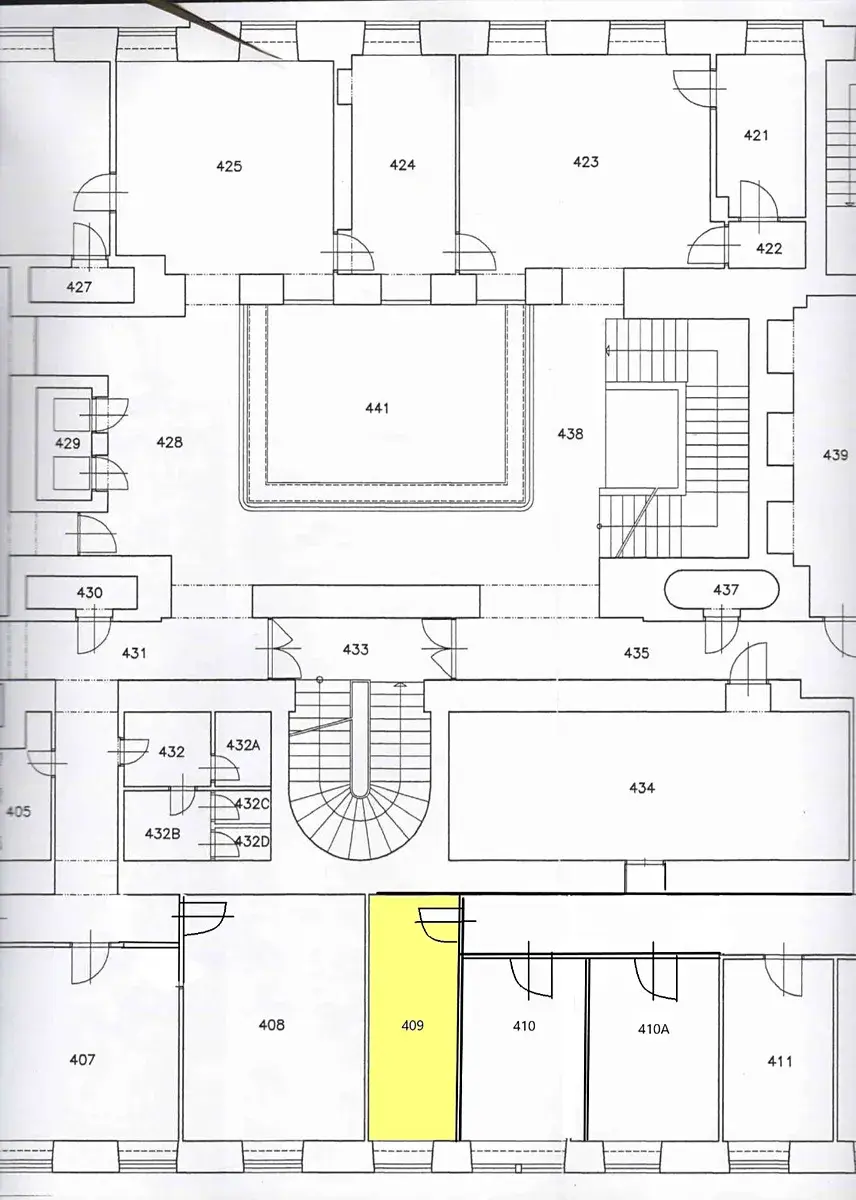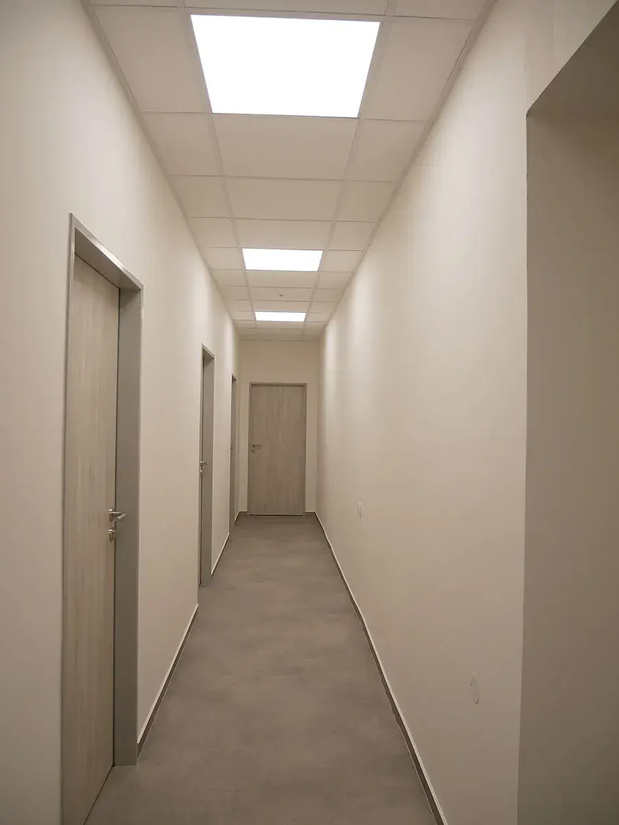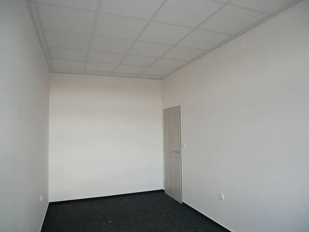 Prostor tvoří jedna menší kancelář. Kancelář je vymalovaná na bílo, na podlaze je položen koberec. Kancelář je po rekonstrukci, má nové podhledy, světla, koberec a dveře.