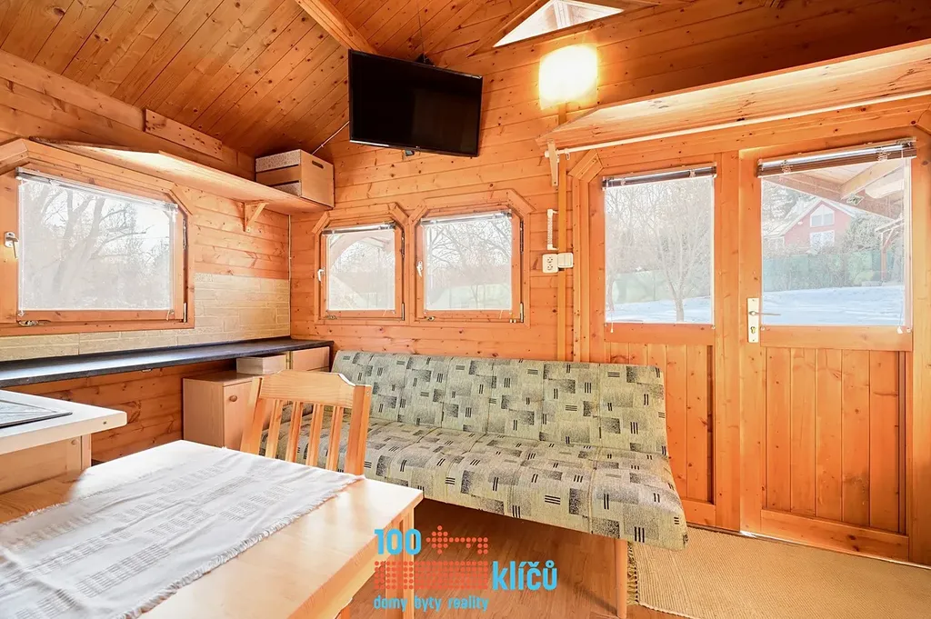 Součástí prodeje je dřevěná chatka, kopaná studna, bazén 3x2 metry se zastřešením a jímka. Vše je ve velmi dobrém stavu.