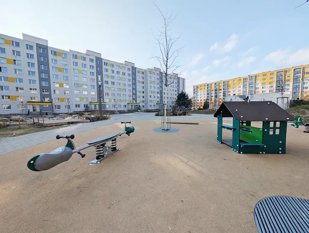 Velkou předností je lokalita – za domem se nachází vnitroblok s odpočinkovým parkem, který byl revitalizován před dvěma lety. Park nabízí nové dětské hřiště a biotop, je mimo dopravní ruch, bezpečný a ideální pro relaxaci i rodiny s dětmi. Zároveň se o pár metrů vedle nachází oblíbený přírodní park Radouč.