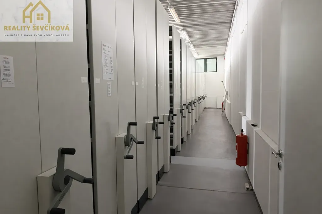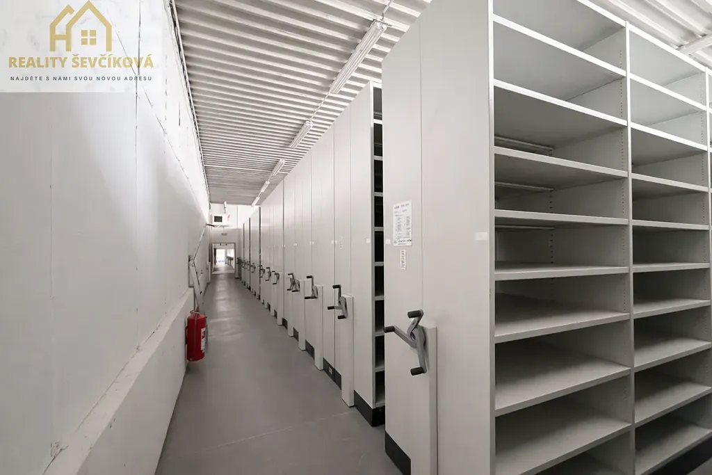 Prostory jsou vytápěné (administrativa + přední část archivu) a součástí pronájmu je kompletní pevně instalovaná regálová technologie Dexion, určená výhradně pro profesionální archivaci dokumentů.