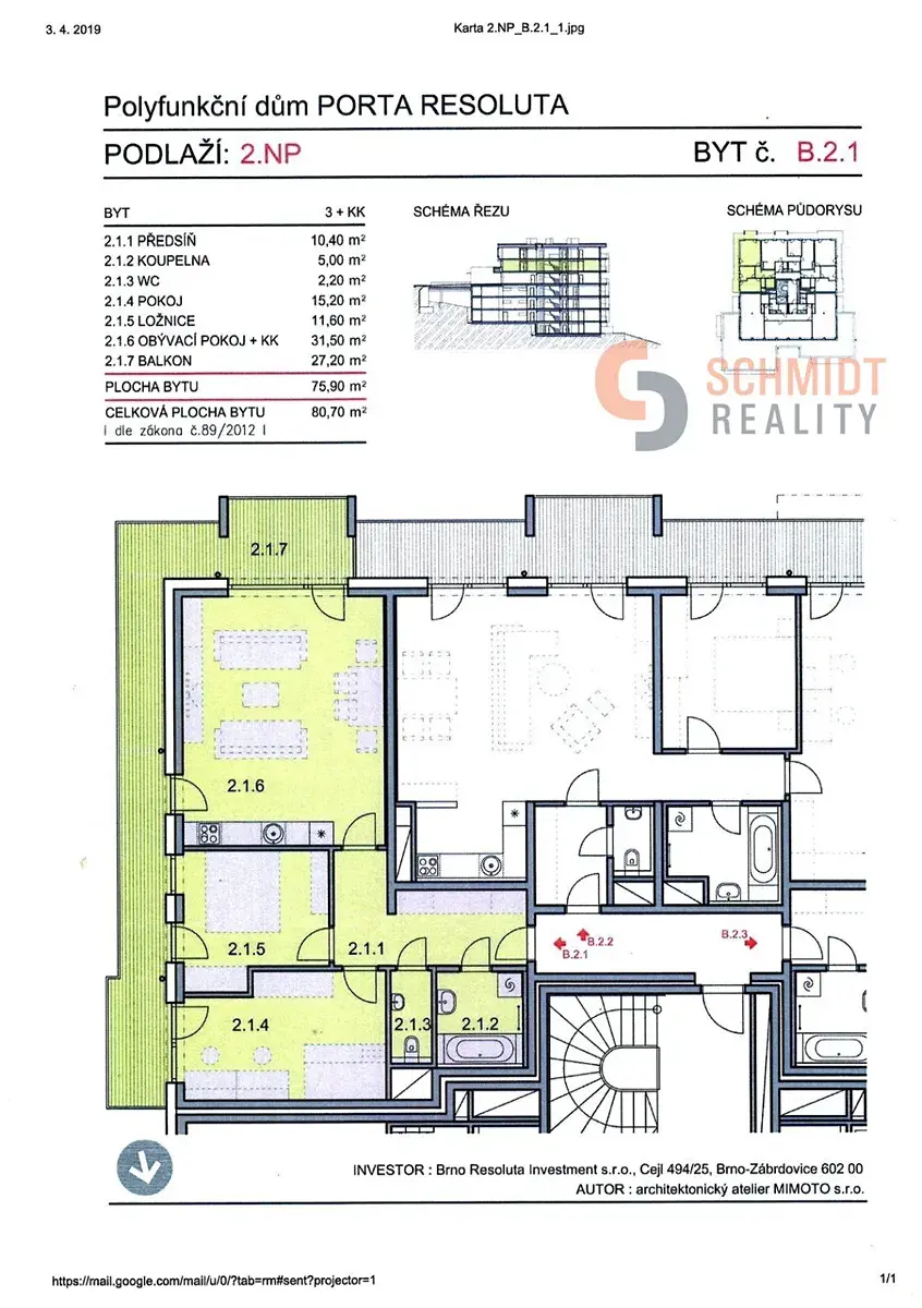 Pronájem bytu 3+kk, Brno, Provazníkova, 81 m2 (ID: 2787679)