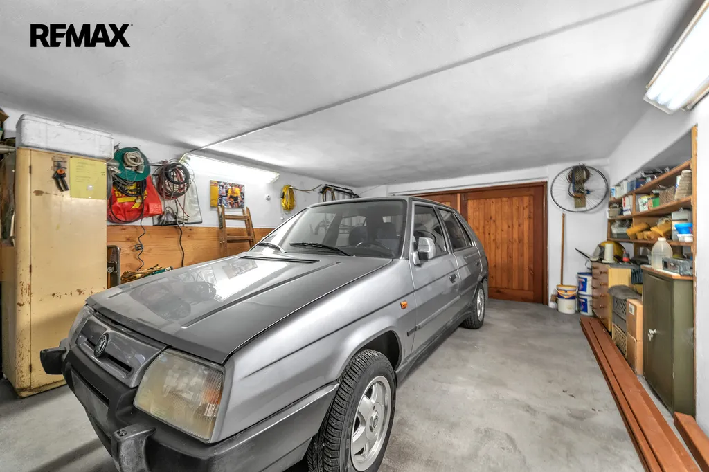 Na zahradě je další garáž s prostorem pro zahradní techniku a dílnu. Tento objekt je částečně podsklepen.