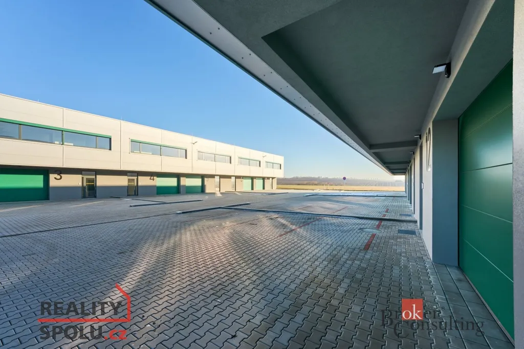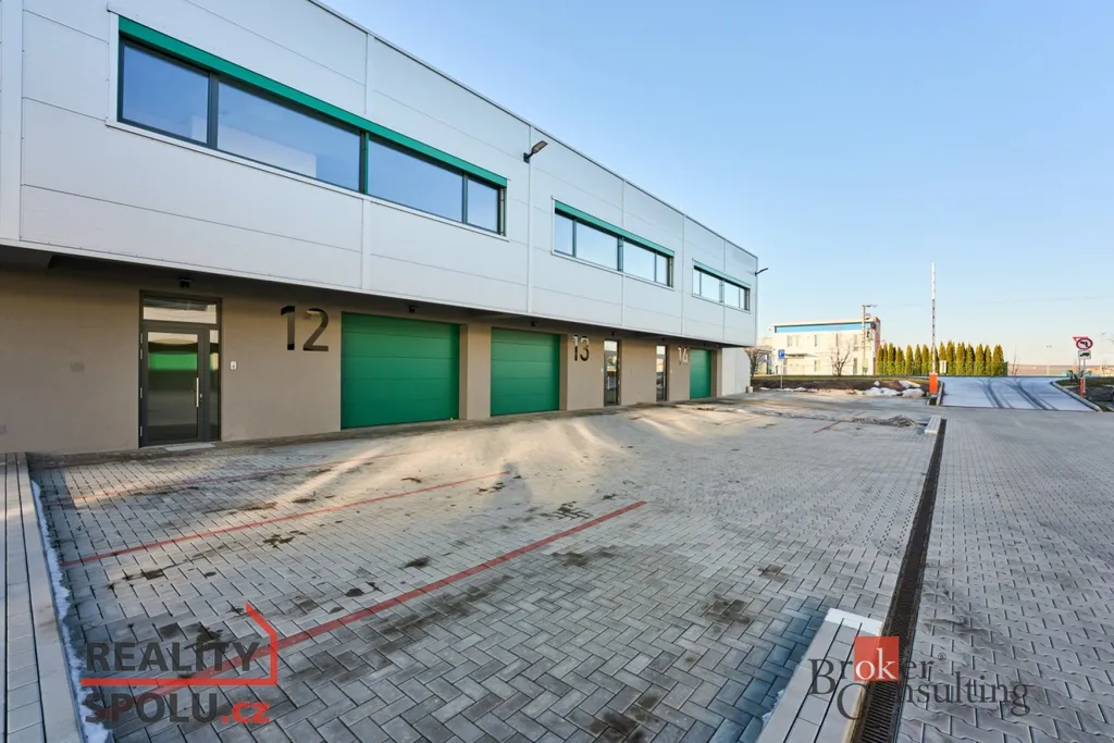Vjezd do skladové haly je z přední strany boxu sekčními vraty s výškou 3 m. Skladová hala má plochu více než 180 m². Ke každému boxů náleží 4 parkovací stání.