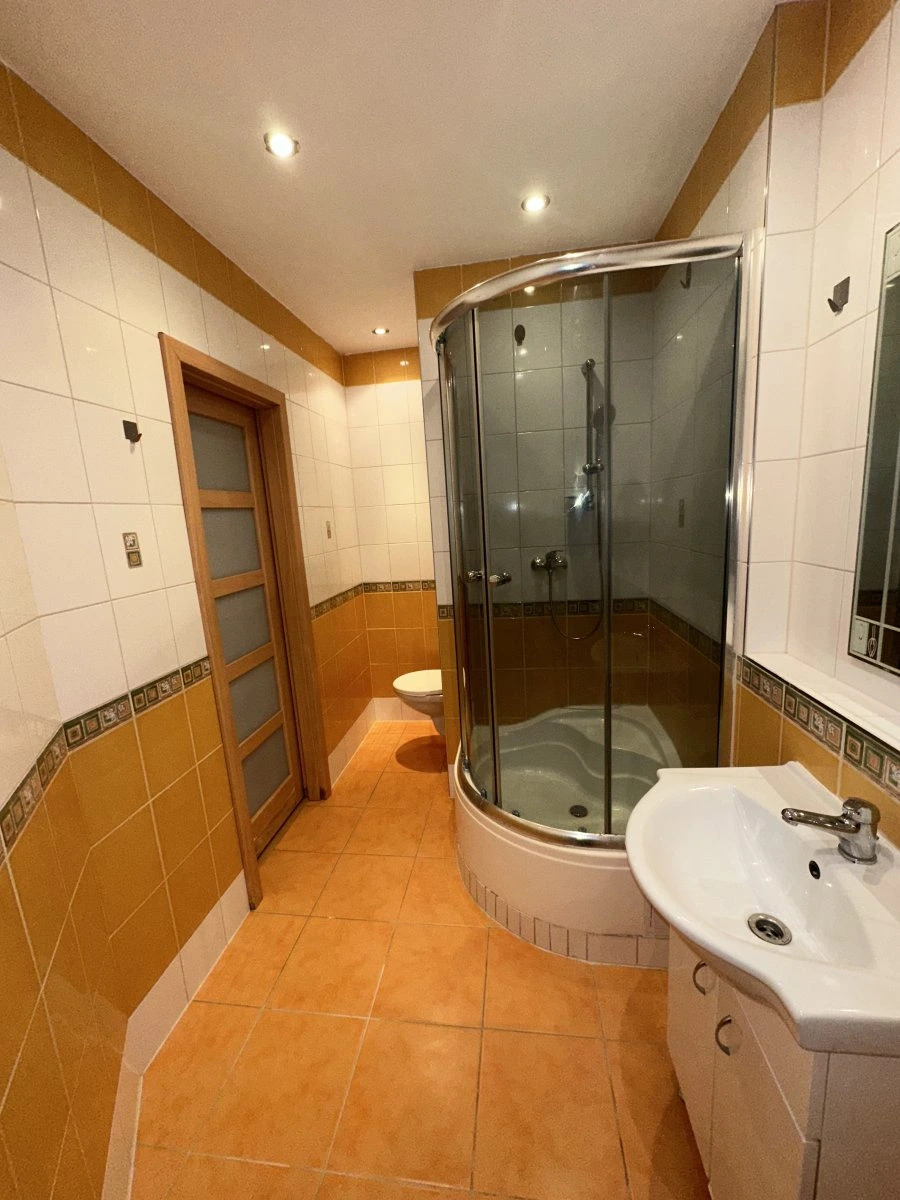 Byt se nabízí nevybavený. Kuchyně disponuje elektrickým sporákem a digestoří. Obývací část a ložnice je nezařízena. V koupelně je sprchový kout, umyvadlo a toaleta.
