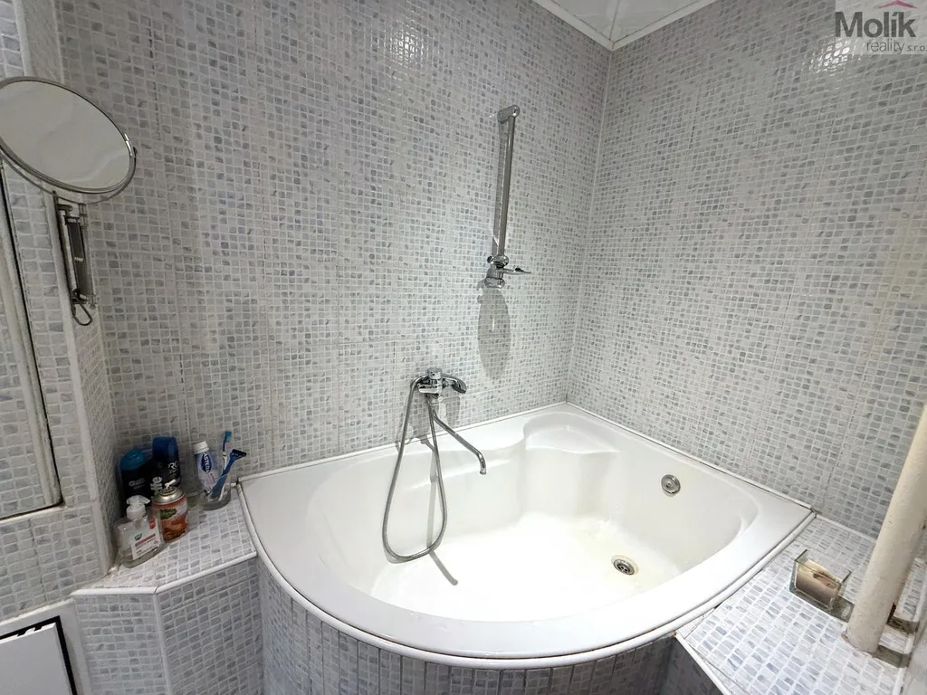 Dispozice bytu zahrnuje předsíň, kuchyň, obývací pokoj, samostatnou ložnici a koupelnu se rohovou vanou a WC.
