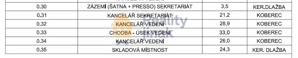 Pronájem nově vymalovaných kancelářských prostor s jedním parkovacím stáním na ulici Novoměstská v Brně - Řečkovicích. Jedná se o 137 m2 prostor, které se skládají ze 3 kanceláří a 1 skladu. Rozmístění viz. půdorys. Prostory se nacházejí ve sníženém přízemí komerčního objektu s velkými okny a možností vyjít ven. Orientovány jsou do zadní strany objektu, ne do ulice. K dispozici malá vlastní kuchyňka, číslo 0.30 na půdorysu, sociální zařízení sdílené ještě s jedním nájemníkem na začátku chodby.