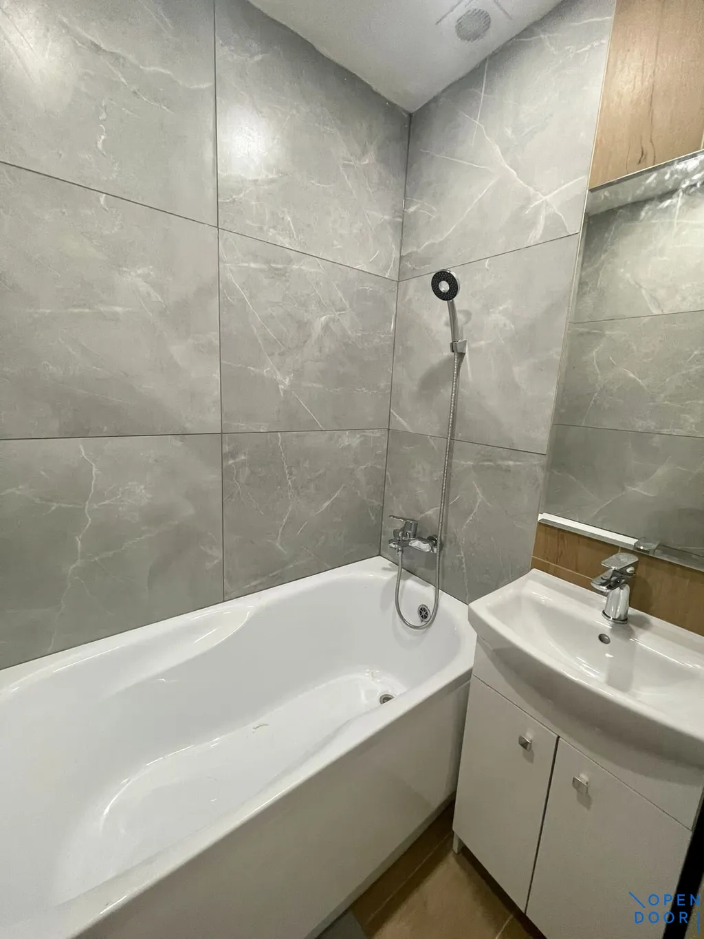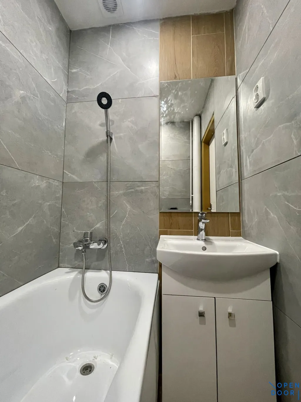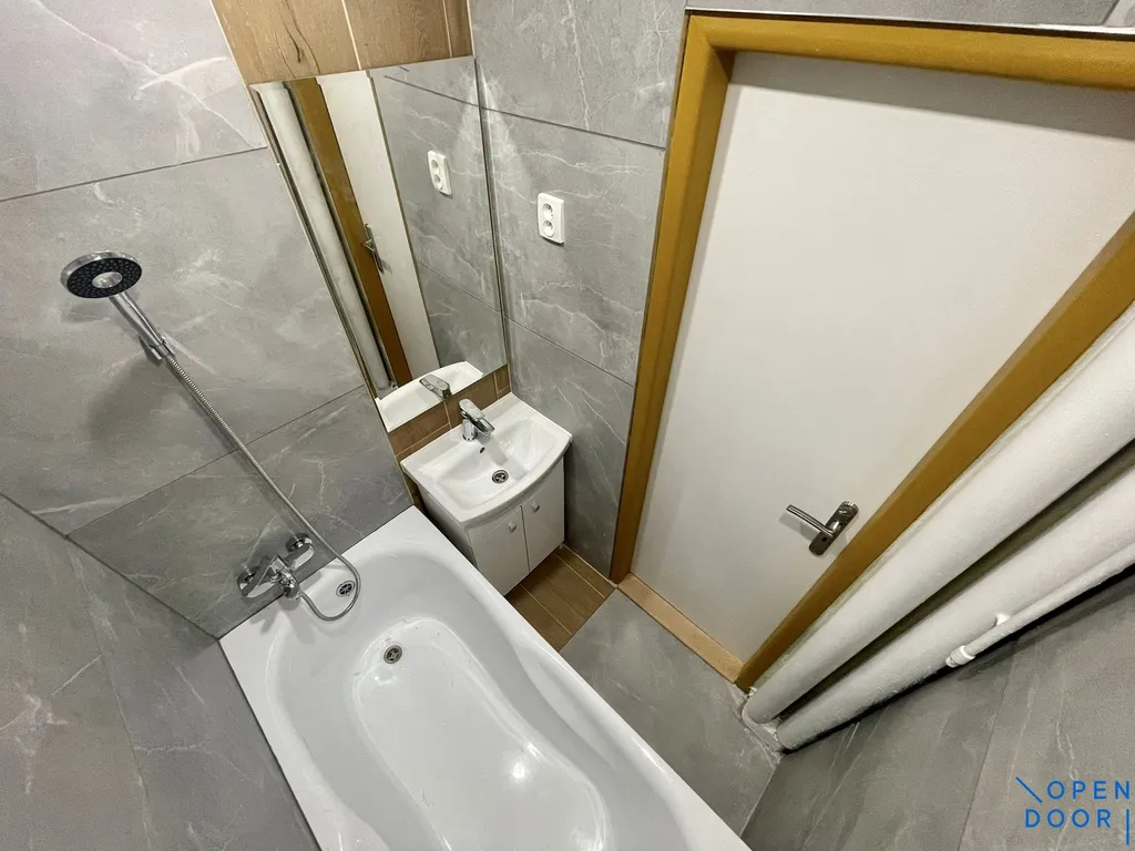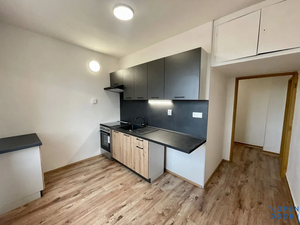 Byt je po kompletní rekonstrukci a je nabízen jako částečně vybavený. K dispozici je kuchyňská linka s elektrickým sporákem a elektrickou troubou. Koupelna s velkoformátovými obklady je vybavena vanou, umyvadlem se skříňkou a zrcadlem, toaleta je samostatná.