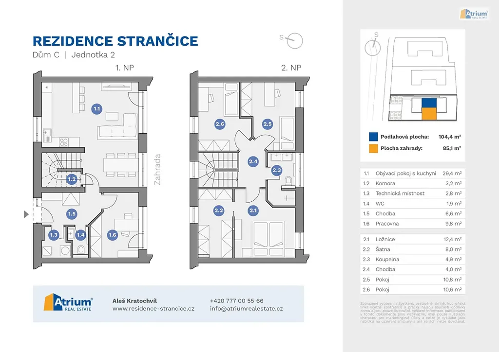Tato konkrétní jednotka s označením C2, o užitné ploše 104,4 m2, se zahradou 85 m2, je ideální variantou pro rodinu s dětmi, kde si budete užívat klidné bydlení s relaxem na privátní zahradě.