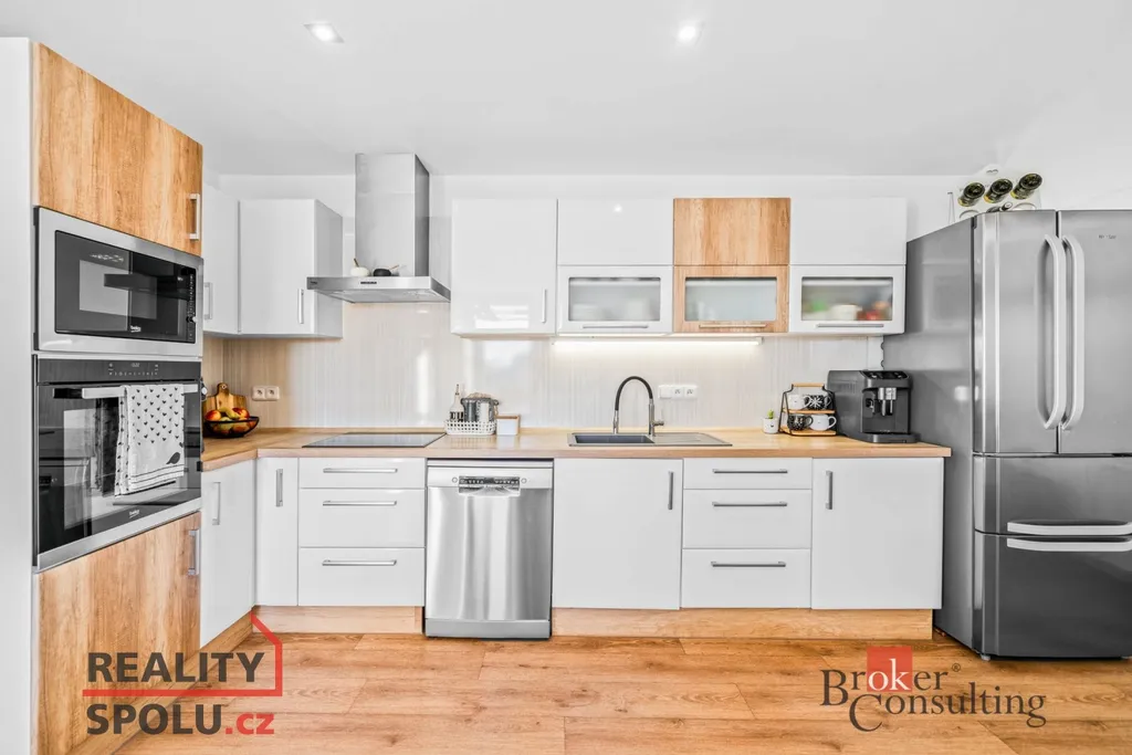 Uzavřený areál s elektrickým vjezdem, 2 vyhrazená parkovací místa přímo u domu, společná zahrada. Malý dům se 4 byty – tento je největší. Samozřejmostí je i sklepní kóje.
