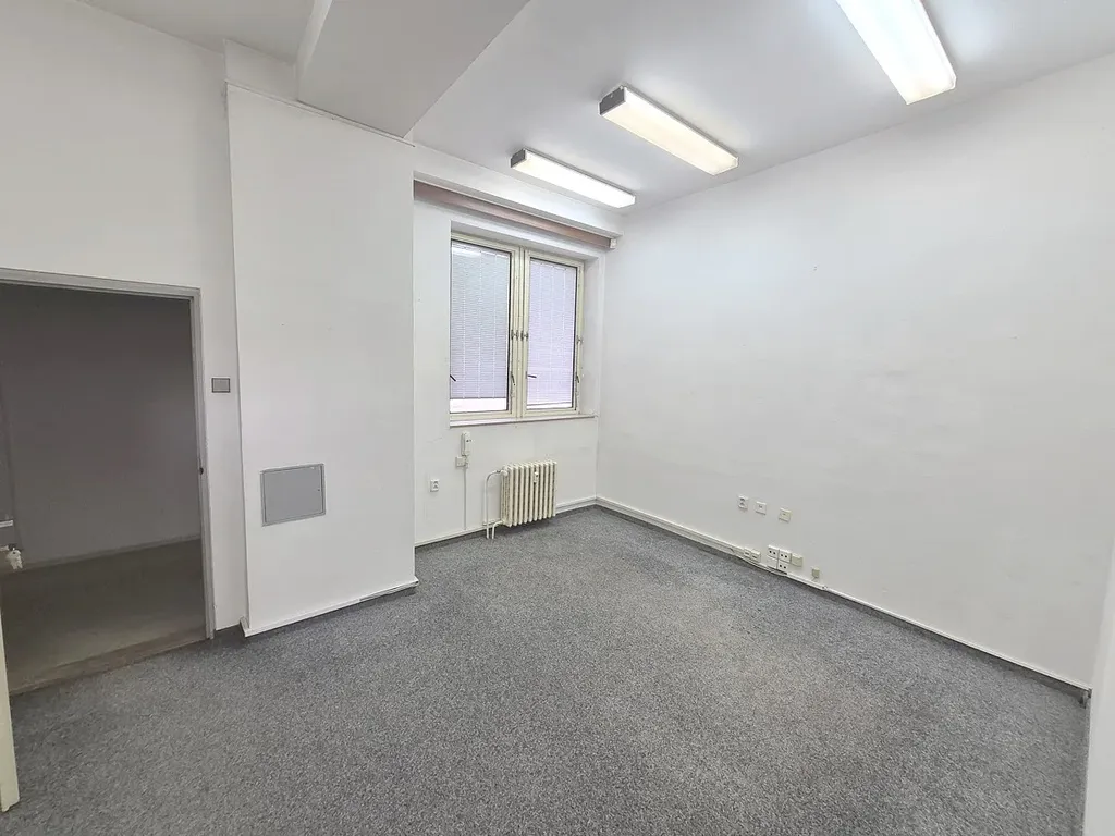 Pronájem nebytových prostor, Praha - Radotín, nám. Osvoboditelů. Dvě průchozí místnosti ( 16 a 19 m2) o celkové výměře cca 35 m2 v prvním patře administrativně technického objektu se společným sociálním zázemím na chodbě. Vhodné jako kancelář, případně i ateliér. Zajímavá lokalita v centru městské části. Ihned volné.