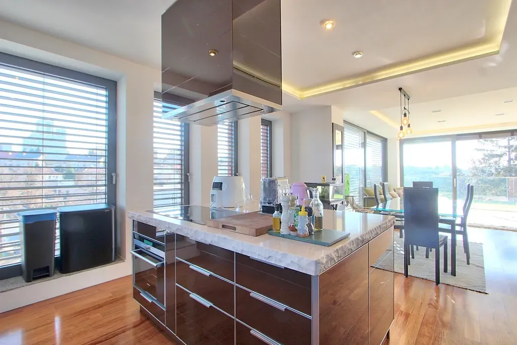 Nabízíme Vám jedinečnou příležitost ke koupi elegantního bytu o dispozici 3+kk, nacházejícího se v exkluzivní rezidenci SWISSHOUSE, který je synonymem pro sofistikované městské bydlení. Tento moderní, slunný byt s velkorysou terasou a nadstandardním provedením je určen pro klienty, kteří vyhledávají vysokou úroveň komfortu, soukromí a výjimečné architektury. Byt 3kk má 115 m2 podlahové plochy, velkoformátová okna se žaluziemi, klimatizaci, světelné podhledy, chytrou domácnost, designovou kuchyň a nechybí ani kvalitní vybavení. To vše podtrhuje terasa 10 m2. Jistě Vás potěší prostorné dvě ložnice, obě mají en-suite koupelnu. Nechybí technická místnost. Nejhezčím místem bytu, ale bezesporu je obývací pokoj s terasou, vhledem ...