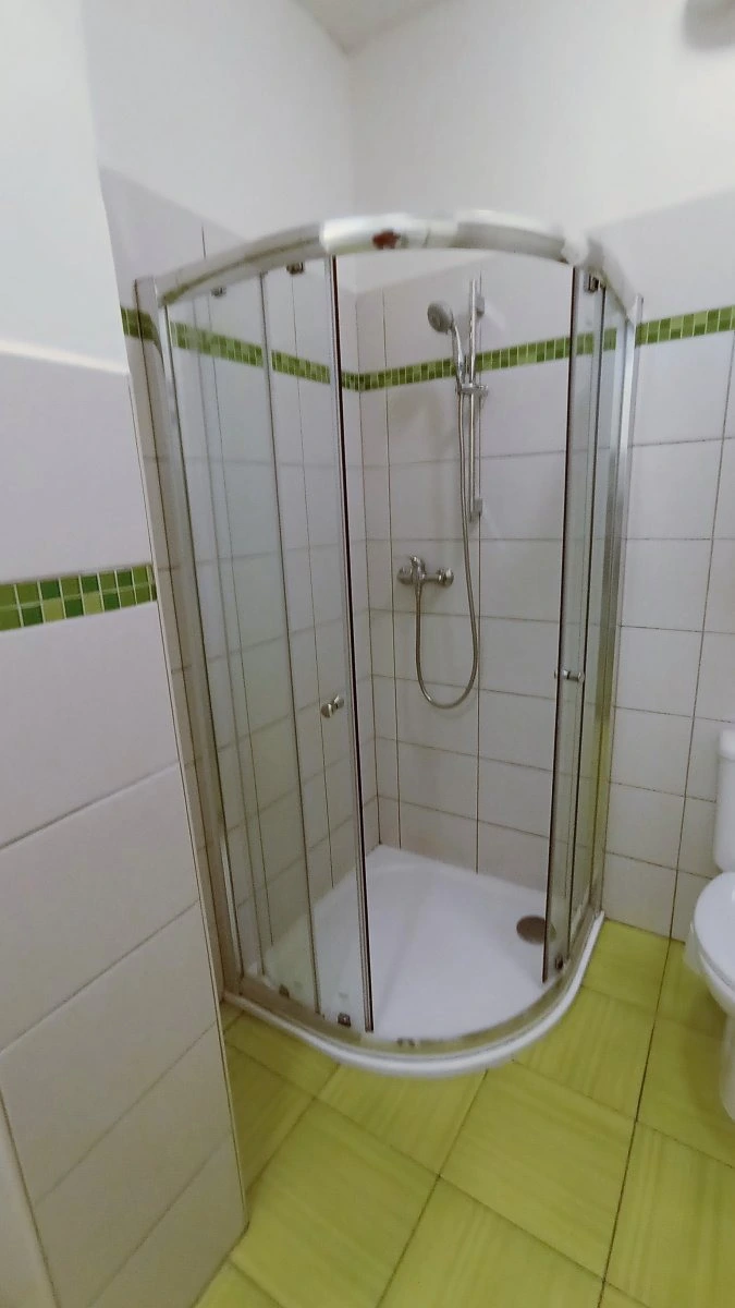 Byt má samostatný vchod a samostatné měření energií. Po vstupu do prostorné předsíně, kde je dostatek místa pro úložné prostory se ocitneme v kuchyni, kde je kuchyňská linka. Rohová linka je vybavena sporákem se sklokeramickou deskou a elektrickou troubou, digestoří a je zde příprava pro připojení myčky a lednice.