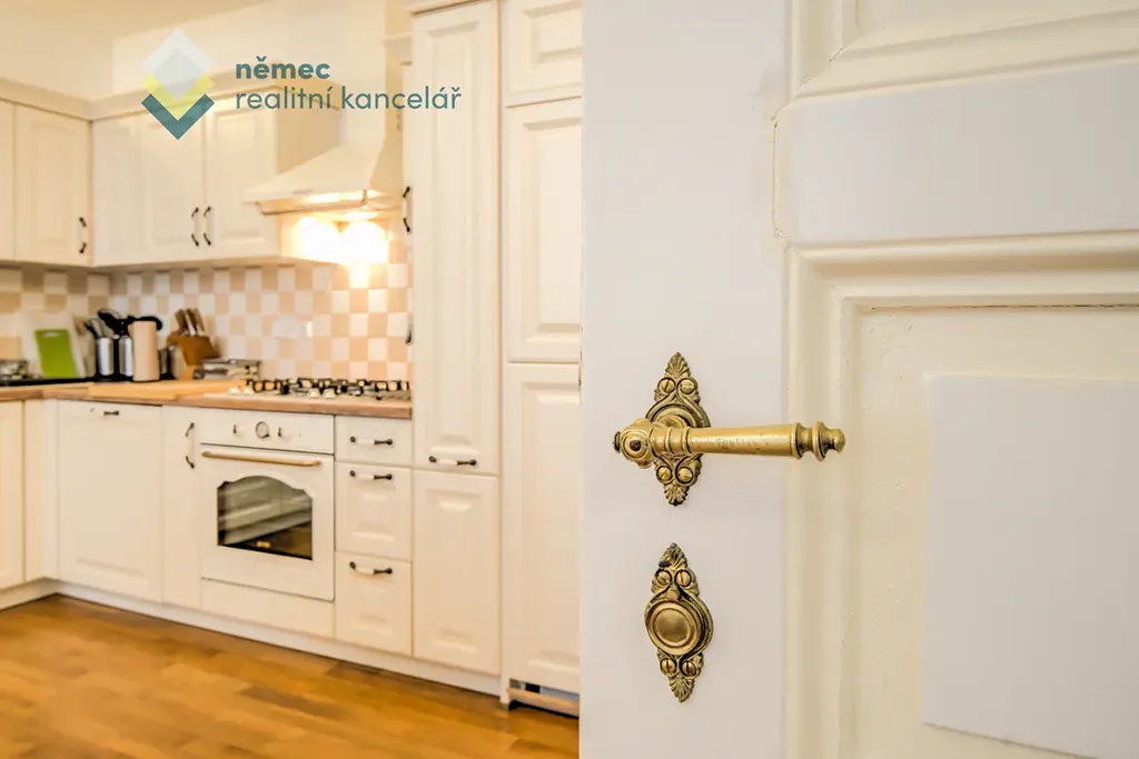 Interiér je kompletně zařízen velmi vkusným nábytkem i doplňky a je tak možné se ihned nastěhovat. Z historických prvků oceníte třeba tradiční kliky a kování.