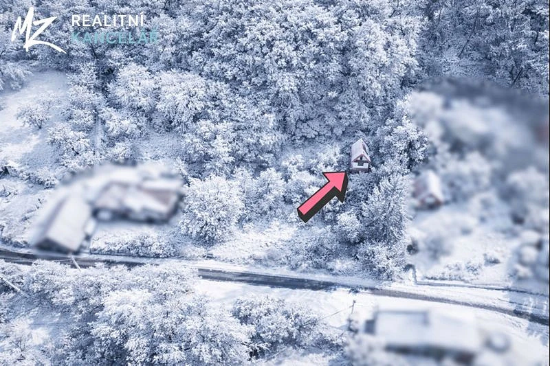 Na pozemku stojí zděná, patrová chatka s podsklepením a zastavěnou plochou 18 m², která poskytne zázemí pro víkendový pobyt nebo přespání. K pozemku vede zpevněná cesta a v sousedství již probíhá výstavba menšího rodinného domu, což zvyšuje potenciál lokality do budoucna.