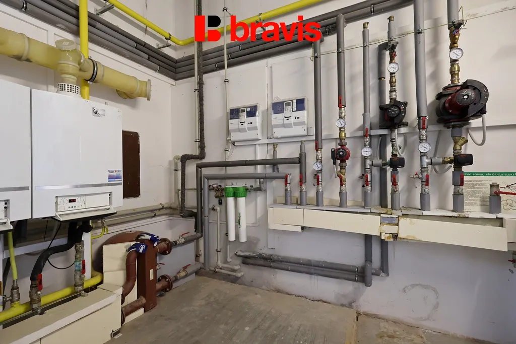 Kotelna s vytápěcím systémem.