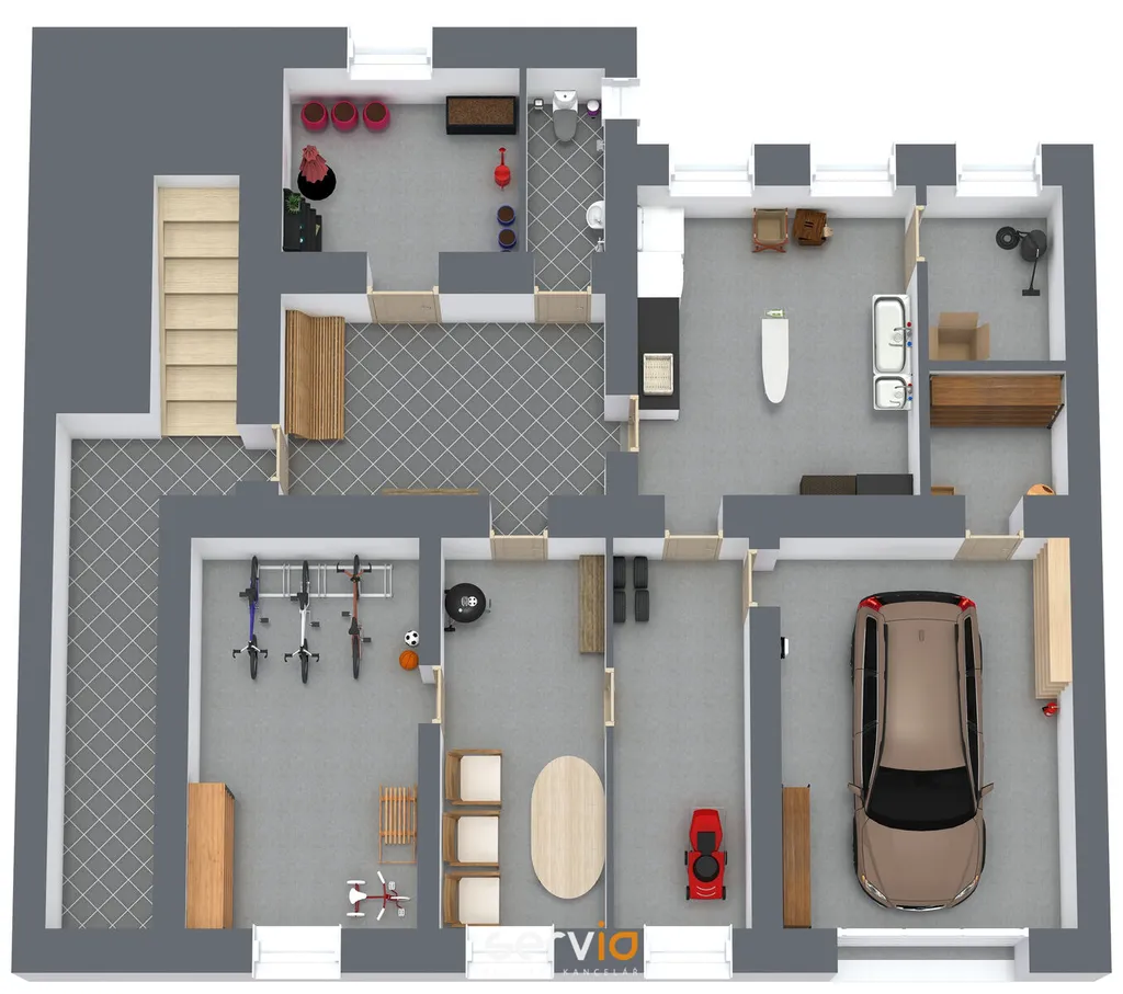 Dům má dispozici 6+1 a je určen ke kompletní rekonstrukci. Užitná plocha domu je 167 m² (z toho 1. NP: 119 m², 2. NP: 48 m²). V suterénu se nachází garáž (22m2) a rozlehlé sklepní prostory výměře 142 m², které nabízí další využití – například pro dílnu, archiv, sklad nebo hobby zázemí.