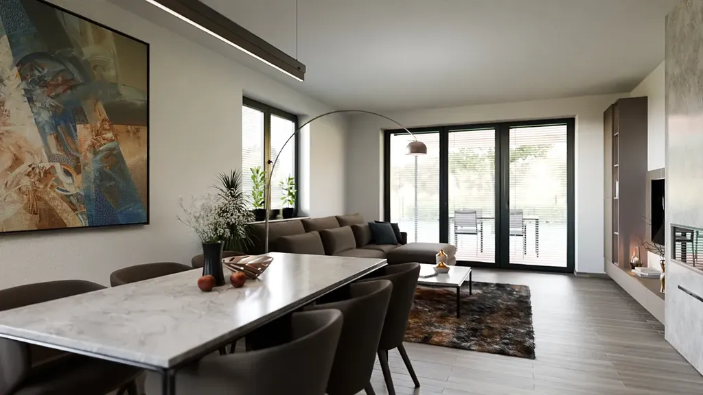 V budově se nachází pouze čtyři řadové domy dvou velikostí, nabízející klidné a moderní bydlení s dostatkem soukromí.