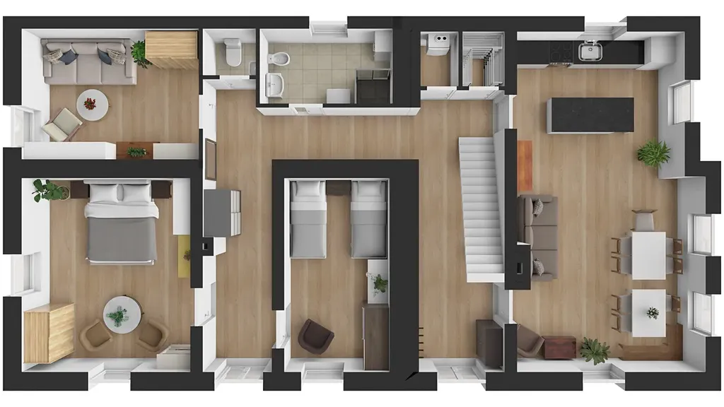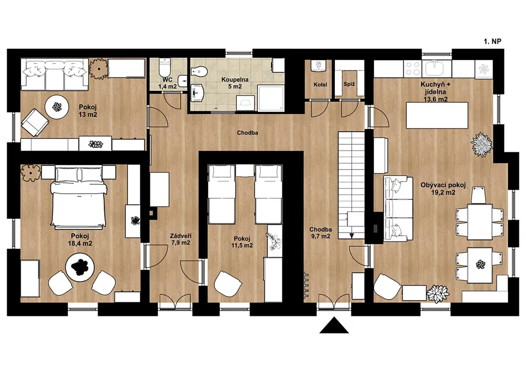 Součástí prodeje je kompletně vybavená kuchyně, nábytek i zařízení. Zastavěná plocha domu činí 150 m². K dispozici je také garáž o 55 m², kolna 12 m², venkovní posezení s grilem a bazén – perfektní místo pro odpočinek a volný čas.