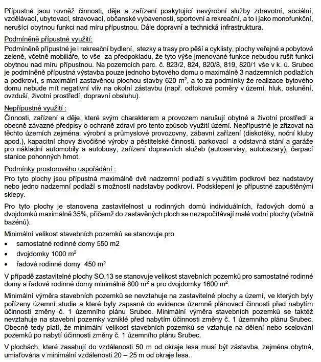 Maximální zastavěnost je stanovena na 35 %, s možností výstavby dvou nadzemních podlaží s podkrovím.