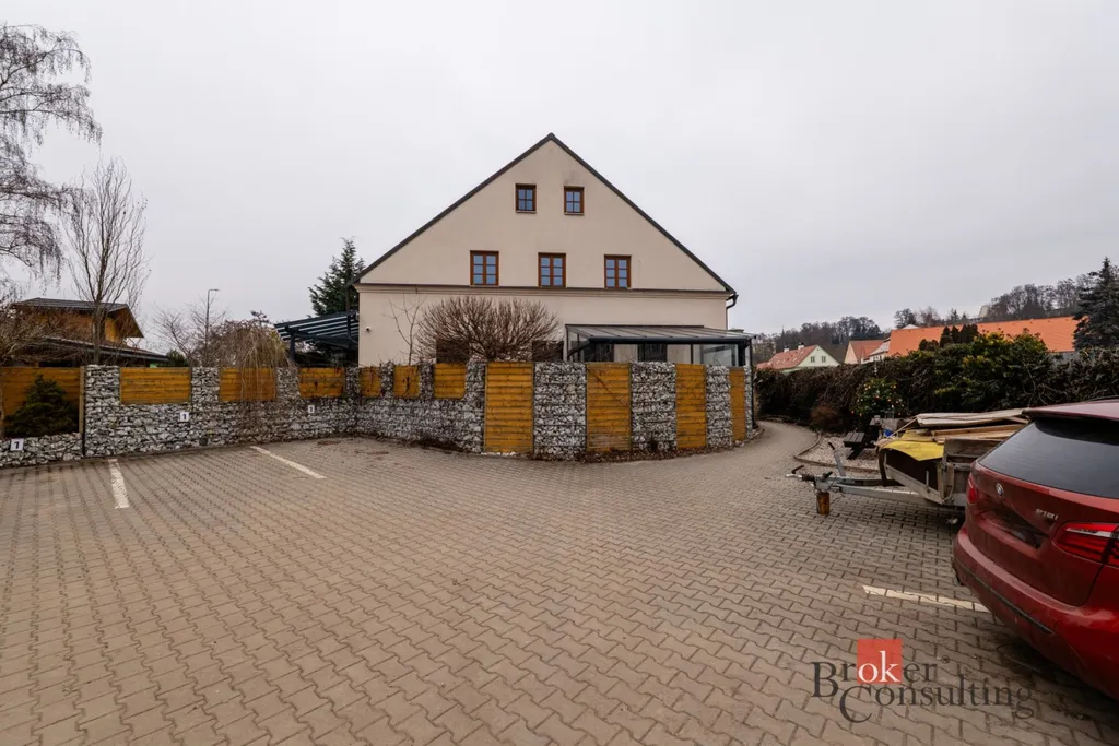 Dvě parkovací stání, umístěná v uzavřeném dvoře, který zajišťuje klidné, bezpečné a velmi soukromé parkování i bydlení.