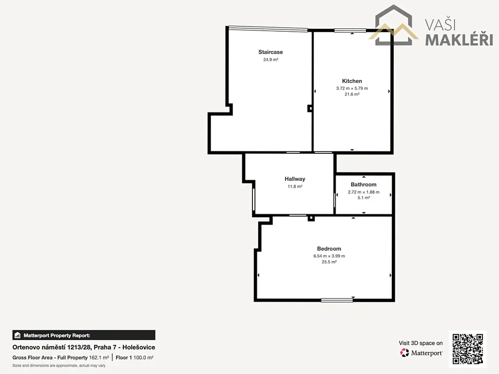 Byt disponuje celkovou podlahovou plochou 136 m a nadstandardním množstvím venkovních prostor, lodžiemi a střešní terasou o celkové výměře cca 161 m, které jsou součástí nájmu bez dalšího poplatku.