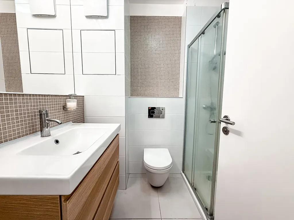 Byt je světlý, prakticky dispozičně řešený a plně zařízený. Kuchyňská linka je vybavena vestavnými spotřebiči (elektrická varná deska, trouba, mikrovlnná trouba, lednice). Koupelna se sprchovým koutem a toaletou, k dispozici pračka. Obytná část nabízí dostatek úložných prostor, postel, pracovní kout a TV. Byt je vhodný zejména pro jednu osobu.