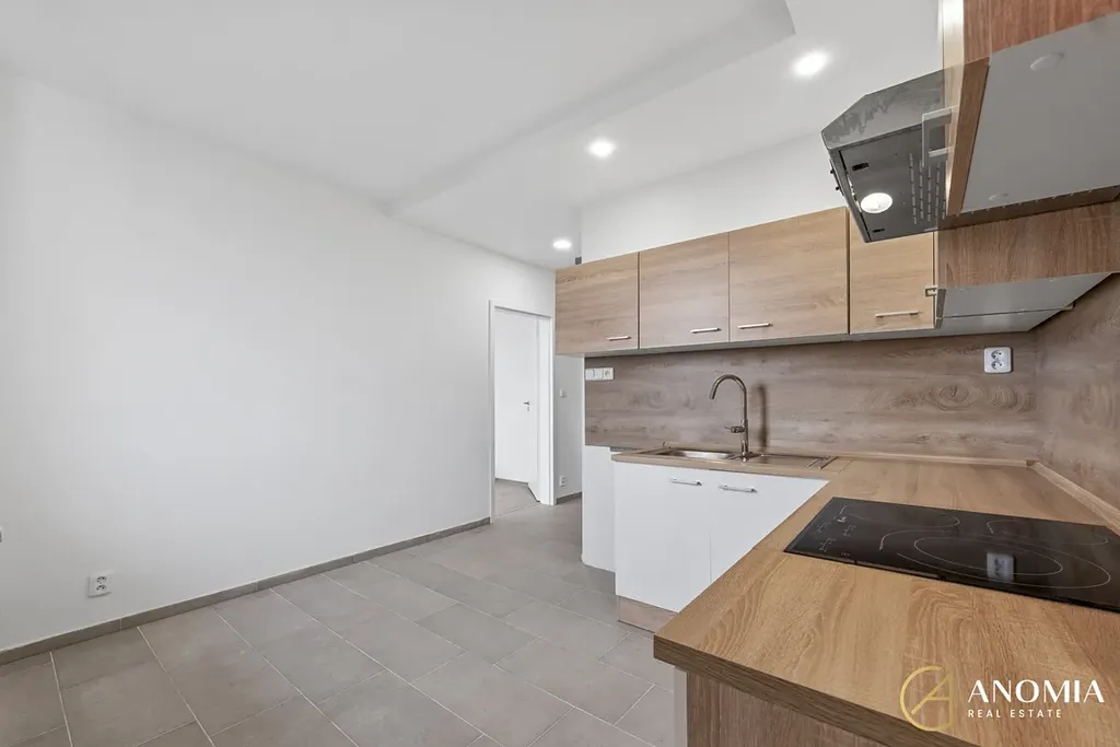 Byt disponuje velkorysou a prostornou kuchyní, která je vybavena novou kuchyňskou linkou včetně spotřebičů. Součástí je indukční varná deska, vestavná trouba, nechybí ani připravené připojení pro lednici a pro pračku. Koupelna je řešena v moderním a vkusném designu, který doplňuje sprchový kout. V bytě jsou položeny kvalitní vinylové podlahy a keramická dlažba.