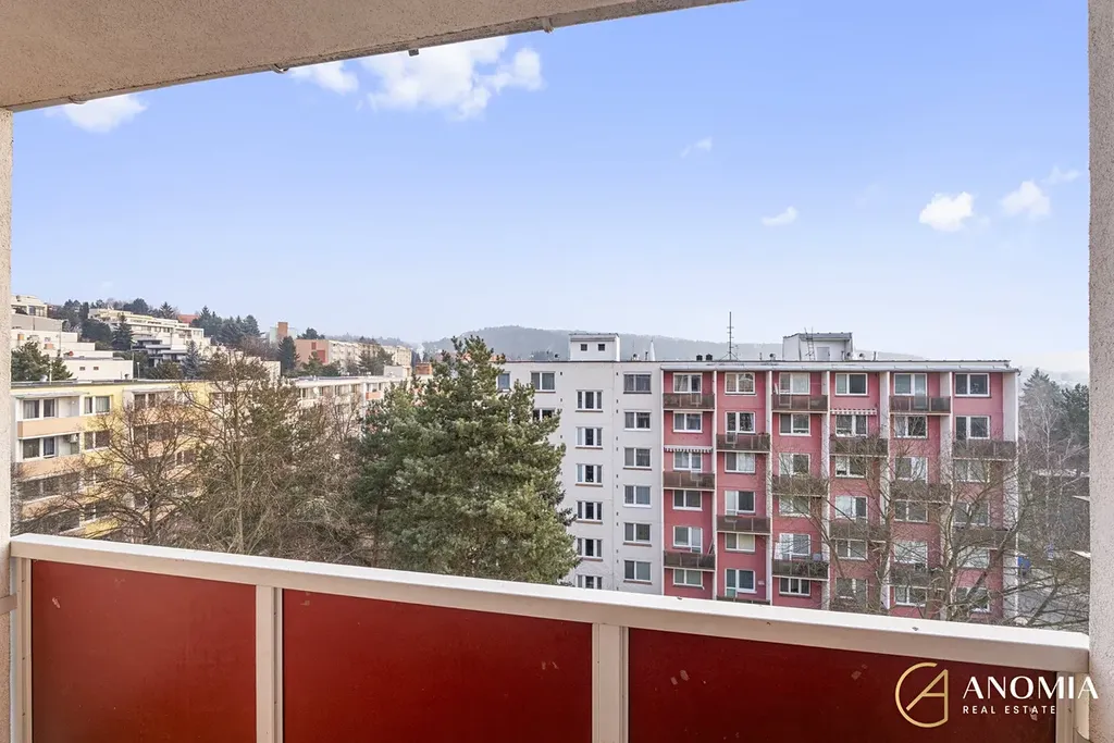 Byt po kompletní rekonstrukci (dokončené 1/2026) je umístěn v posledním, 7. nadzemním podlaží revitalizovaného bytového domu s výtahem. Jeho velkou předností je lodžie o ploše 3,12 m² se západní orientací, která poskytuje příjemné posezení a výhled do okolní zeleně. K bytu dále náleží sklepní kóje o výměře 1,36 m² a komora o ploše 1,34 m², umístěná v mezipatře.