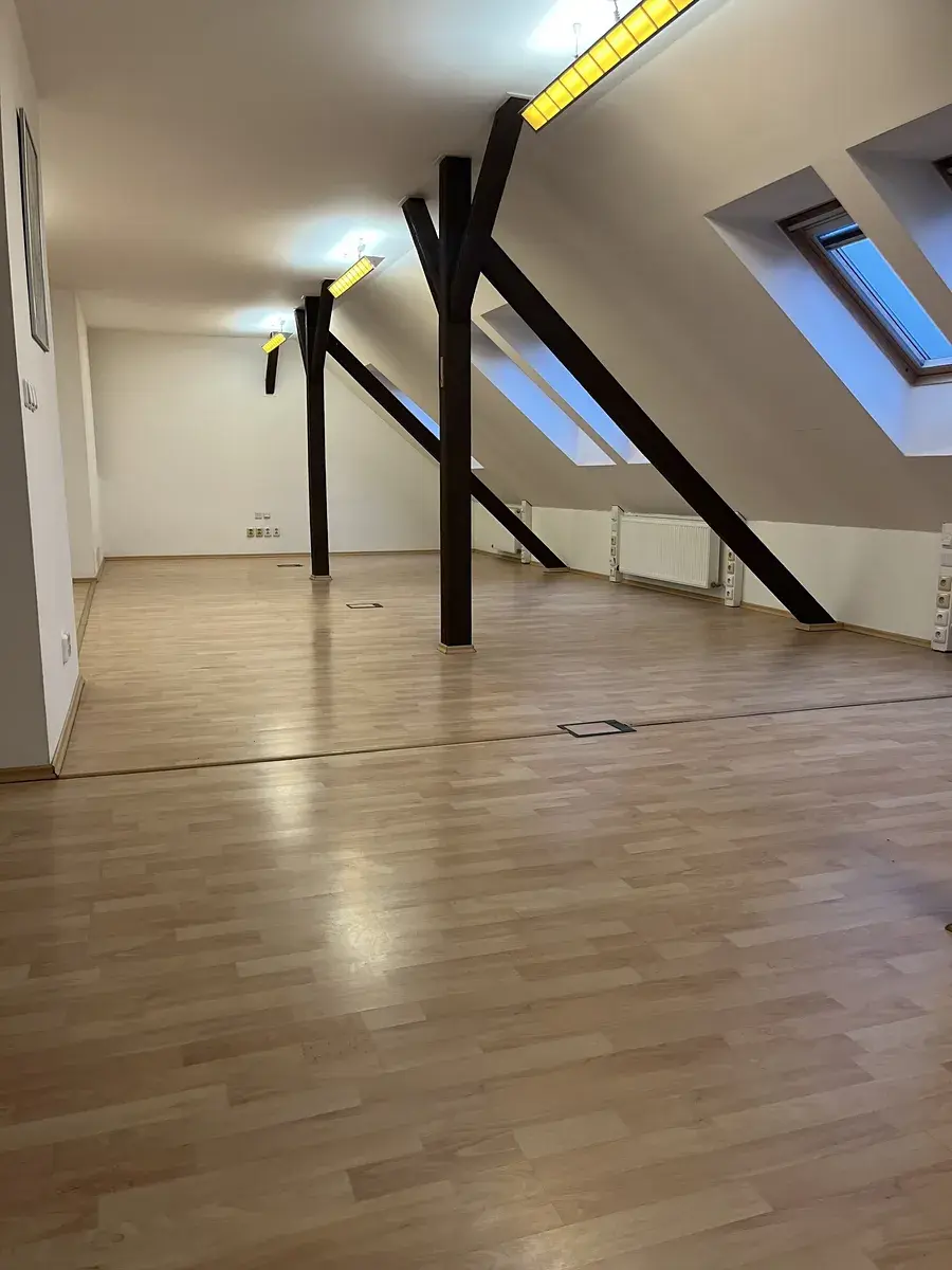 Jedná se samostatnou open space jednotku v podkroví o celkové ploše 136 m2, s vlastním sociálním zařízením ( 2 x wc) a kuchyňkou.