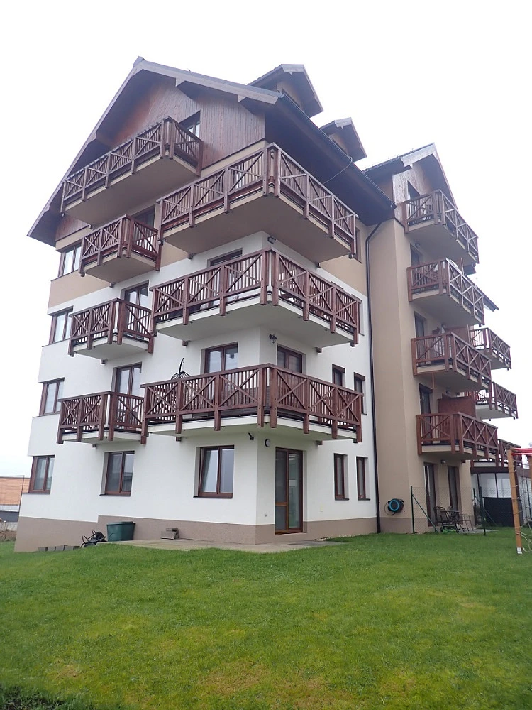 Bytový dům je horského typu, který vkusně zapadá do této lokality. Působí moderně, čistě a klidně. Vytápění objektu zajištuje vlastní plynová kotelna, druh svislé nosné konstrukce tvoří cihly a tvárnice. Objekt je napojený na vodovod a kanalizaci. Výhodou je pouze 18 bytových jednotek v 6-ti podlažích. PENB skupina B.
