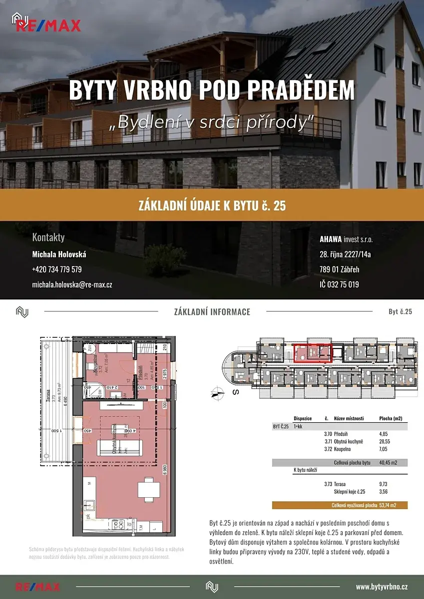 Nabízíme k prodeji apartmánový byt s velkorysou terasou v nově zrekonstruovaném 3 podlažním domě v samém srdci Jeseníků, obklopený dechberoucí přírodou a krásným výhledem na okolní krajinu. Ideální pro ty, kteří hledají klid a relaxaci, ale zároveň chtějí mít na dosah veškeré aktivity, které Jeseníky nabízejí – od lyžování a snowboardingu v zimě, po turistiku a cyklistiku v létě.