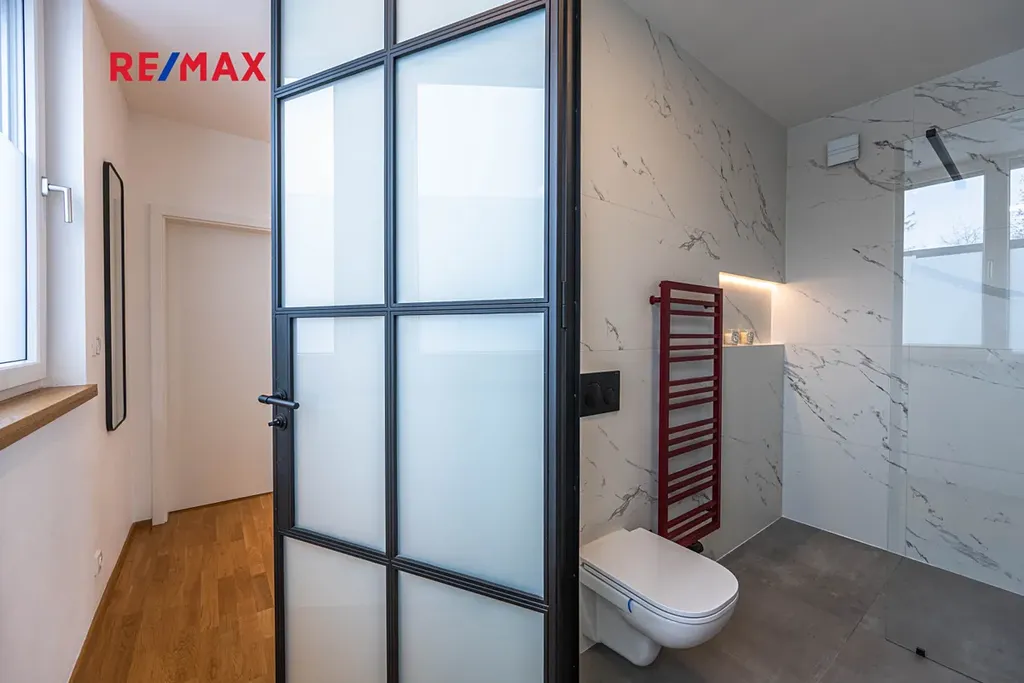 Nemovitost disponuje třemi designovými koupelnami, které jsou zařízeny nadstandardními zařizovacími prvky (HansGrohe, Laufen).